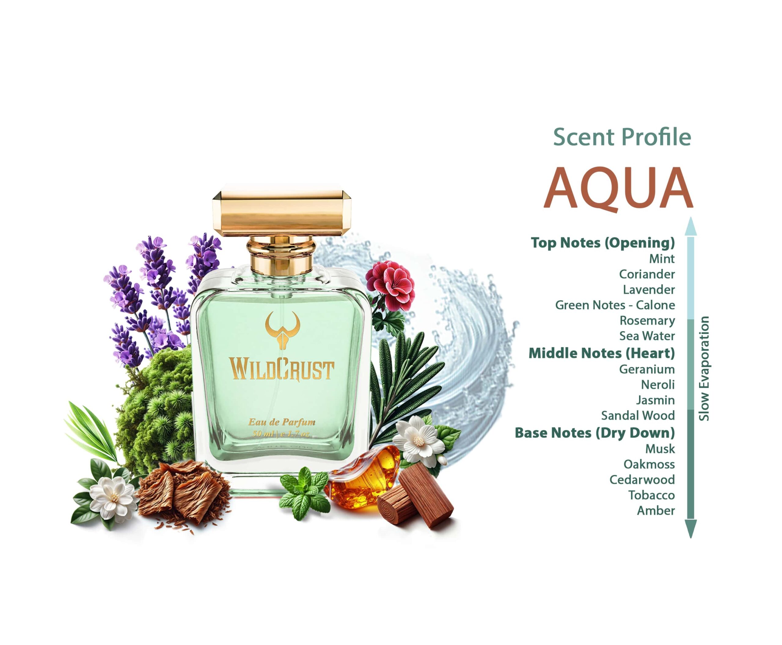 From the first spray, Aqua awakens your senses like a splash of cold ocean breeze on a hot summer day. The opening is instantly refreshing and sharp, with cool mint and crisp green notes setting a clean, invigorating tone. As the scent evolves, aromatic lavender and soft florals emerge, balancing freshness with a touch of elegance and warmth.