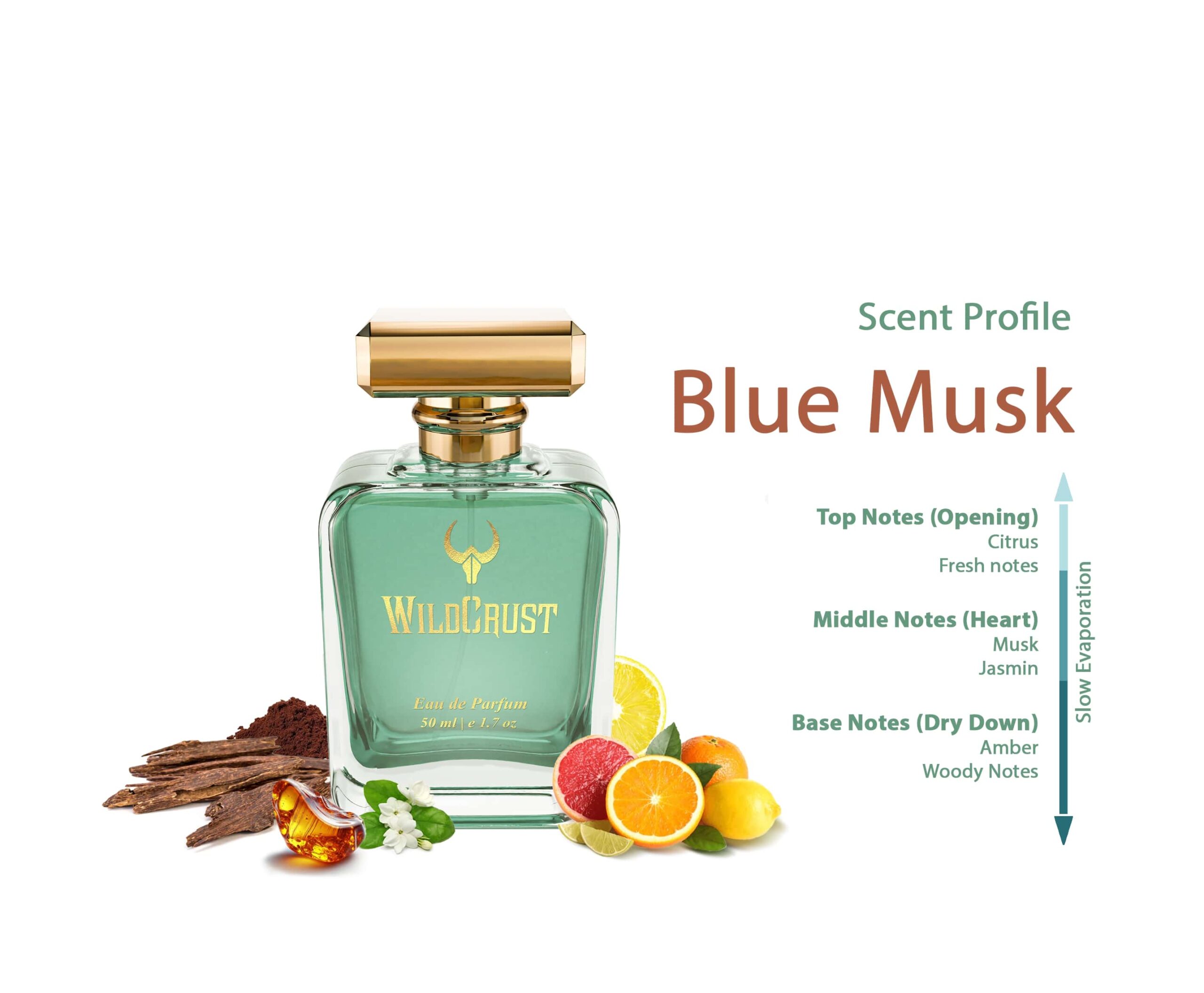Blue Musk opens with a crisp splash of citrus and airy fresh notes that awaken the senses. At its heart lies a soft fusion of musk and jasmine, bringing a touch of subtle sensuality and sophistication. As it dries down, the warm embrace of amber and woody notes leaves a smooth, comforting trail that lingers beautifully.